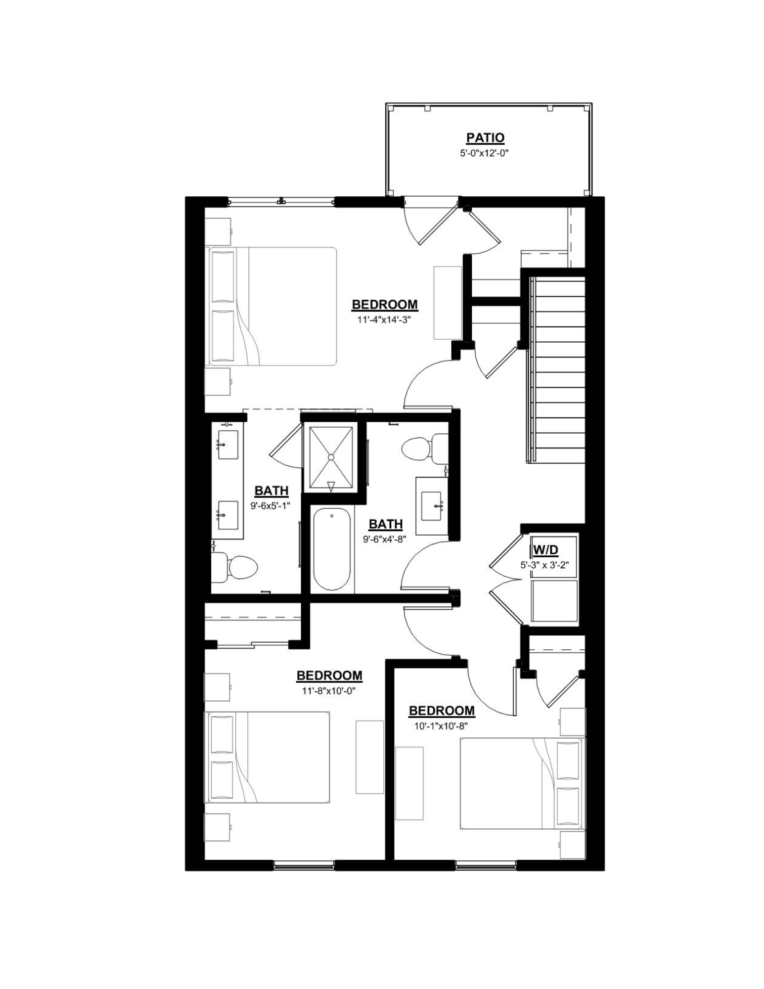 Unique modern floor plan offering open living areas and a dedicated floor for bedrooms